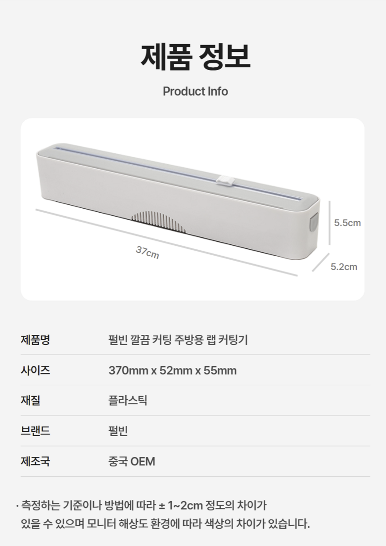 - 제품명: 펄빈 깔끔커팅 주방용 랩 커팅기